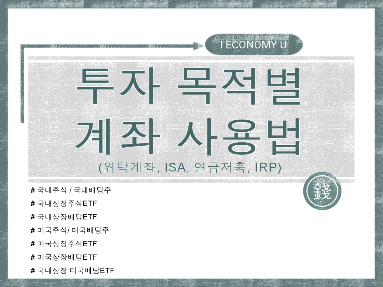 재테크 하기 쉽지않은 요즘 주린이 분들이라면 국내 주식시장에 회의감을 많이 가지실텐데요. 그만큼 미국, 코인 시장으로 자금이 많이 빠져나가는 상황입니다. 만약 투자를 하고 계신다면 위탁계좌, ISA, 연금저축, IRP 등 투자 목적에 맞게 계좌를 활용하는 것이 더욱 중요한데요. 재테크를 처음 시작하시는 분에게는 시작의 기초를 제대로 하실 수 있도록 공유해 드리며, 투자를 하고 계신분은 투자 목적에 맞게 활용을 잘하고 계신지 확인해 보시면 좋을 것 같습니다.