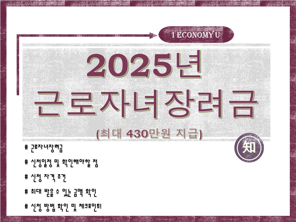5월이면 저소득 가정이 꼭 챙겨야 하는 정부 정책 지원이 있는데요. 바로 '근로자녀장려금'입니다. 신청만 잘하면 상당히 큰 금액을 돌려받을 수 있는데요. 2025년에는 소득 기준도 완화되어 더 많은 분들이 대상에 포함될 수 있다고 합니다. 2025년 근로자녀장려금에 대해 자세히 알아보겠습니다.